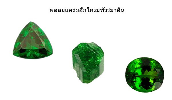 Chrome Tourmaline :ชื่อพลอยก็บ่งบอกว่าเกี่ยวข้องกับธาตุโครเมี่ยม (Cr) ซึ่งเป็นธาตุให้สีพลอยที่สวยที่สุด เช่นในทับทิม มรกต อเล็กซานไดรท์ ซาโวไรท์ เป็นต้น สีเขียวของ Chrome Tourmaline จึงเป็นสีเขียวสดใส เจิดจ้า (Vibrant Green) หรือ Emerald Green ซึ่งผมเคยกล่าวไว้ว่าเป็นสีคู่แข่งสูสีกับ Emerald ครับ Emerald มักเต็มไปด้วยตำหนิมลทินต่างๆ แถมยังเปราะแตกง่ายไม่คงทน ส่วน Chrome Tourmaline นั้นเนื้อสะอาดและมีความแข็งและทนทานบึกบึนกว่า คุณสมบัติตรงนี้ก็ชนะ Emerald แบบขาดลอยได้เลย
